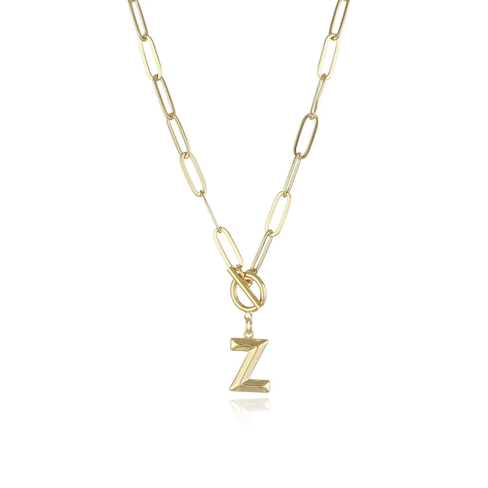 Style: This A-Z Initial Toggle Paperclip Necklace features a personalized letter pendant on a trendy paperclip chain. The modern toggle clasp adds a contemporary touch to this stylish initial piece. Material: Crafted from high-quality stainless steel for durability and a sleek, polished finish. Size: The necklace measures 45 cm (17.7 in). The initial pendant measures 1.2 x 1.0 cm (0.47 x 0.39 in).