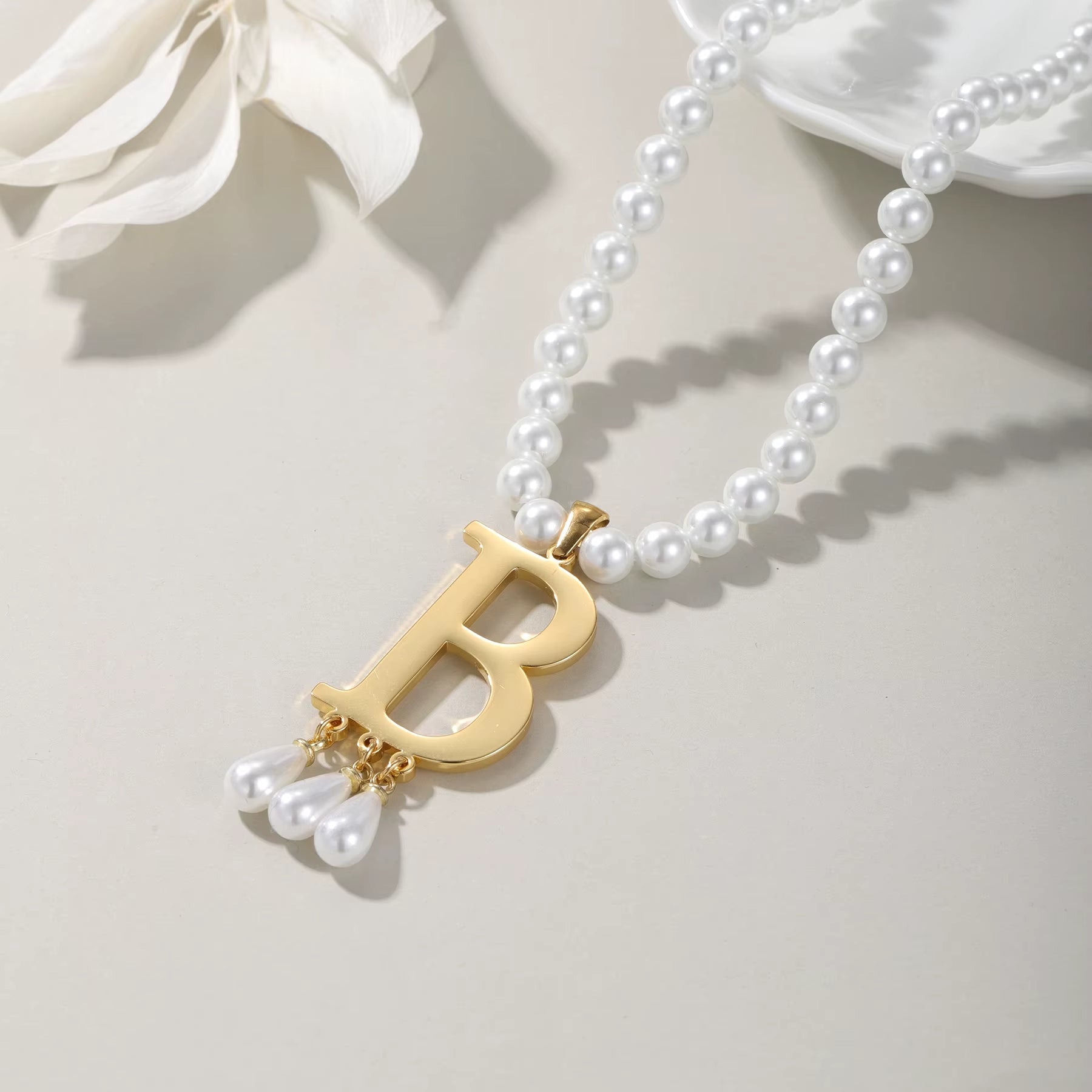 Style: This elegant necklace features a lustrous pearl chain paired with a bold A–Z initial charm, blending classic beauty with a personal touch. Perfect for layering or wearing solo as a statement piece. Material: Crafted from gold-plated stainless steel and high-quality faux pearls for durability, shine, and timeless appeal. Size: The necklace measures approximately 45 cm (17.72 in) in length, offering a comfortable fit that sits gracefully along the neckline.