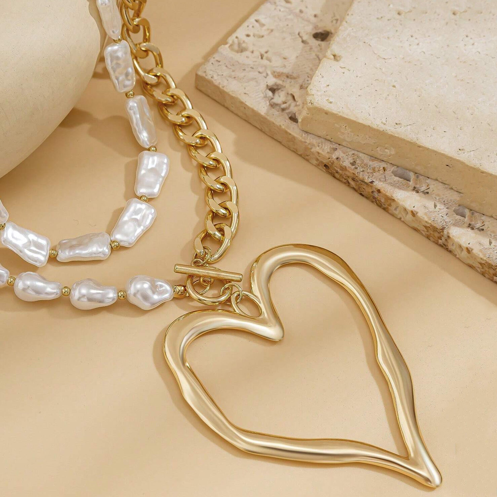 Style: This Chunky Heart Pearl Necklace features an oversized heart pendant adorned with lustrous pearls for a bold, romantic statement. The substantial design creates striking elegance that beautifully frames the neckline with dramatic feminine appeal. Material: Crafted from high-quality metal with lustrous imitation pearls and detailed heart construction, providing durability and lasting shine while maintaining the sophisticated charm of classic pearl jewelry. Size: The necklace measures 45 cm (17.7 in), offering perfect positioning at the collarbone for maximum visual impact while ensuring comfortable wear throughout the day.