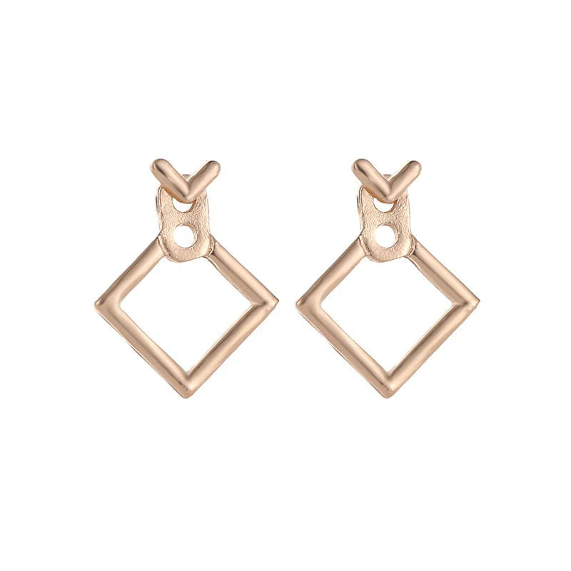 Style: These earrings feature a modern overlapping design with tilted square shapes, creating a bold yet minimal geometric statement. Their clean lines and angular form make them a versatile accessory for both casual and elevated looks. Material: Crafted from gold-plated stainless steel for durability, tarnish resistance, and a polished finish. Size: Each earring measures approximately 2.0 x 1.6 cm (0.79 x 0.63 in), offering a comfortable and eye-catching drop.